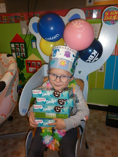 Nu kon zijn verjaardag goed gevierd worden. Per klas werd iets gedaan voor de Sint.